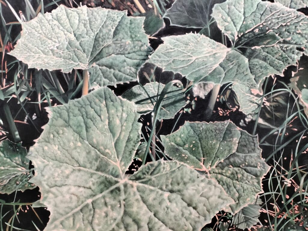 Der magische Realismus (nicht Fotorealismus!) des gepinselten Farbgeflechts, das von weitem so naturecht verblüfft.