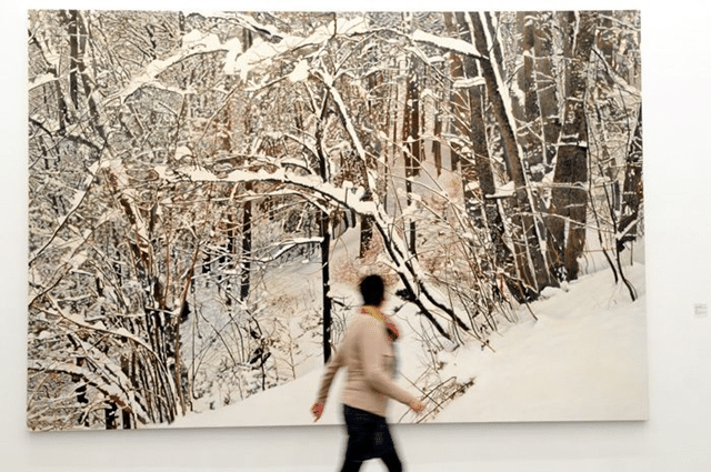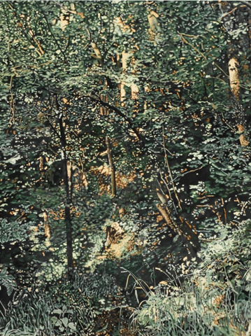 Wir stehen vor den «Jahreszeiten» (325 X 480 cm), ein Stück Wald bei Rüschegg, wo Gertsch wohnte: Frühling, Sommer, Herbst und Winter. Alle vier betörend in ihrer Einzigartigkeit. Der Winter lässt uns etwas erschaudern, der Sommer ist üppig im Blättergewirr. Ja, man muss sie gesehen haben, man muss staunend vor dieser gewaltigen und dennoch sensiblen, realistischen Kunst gestanden sein…