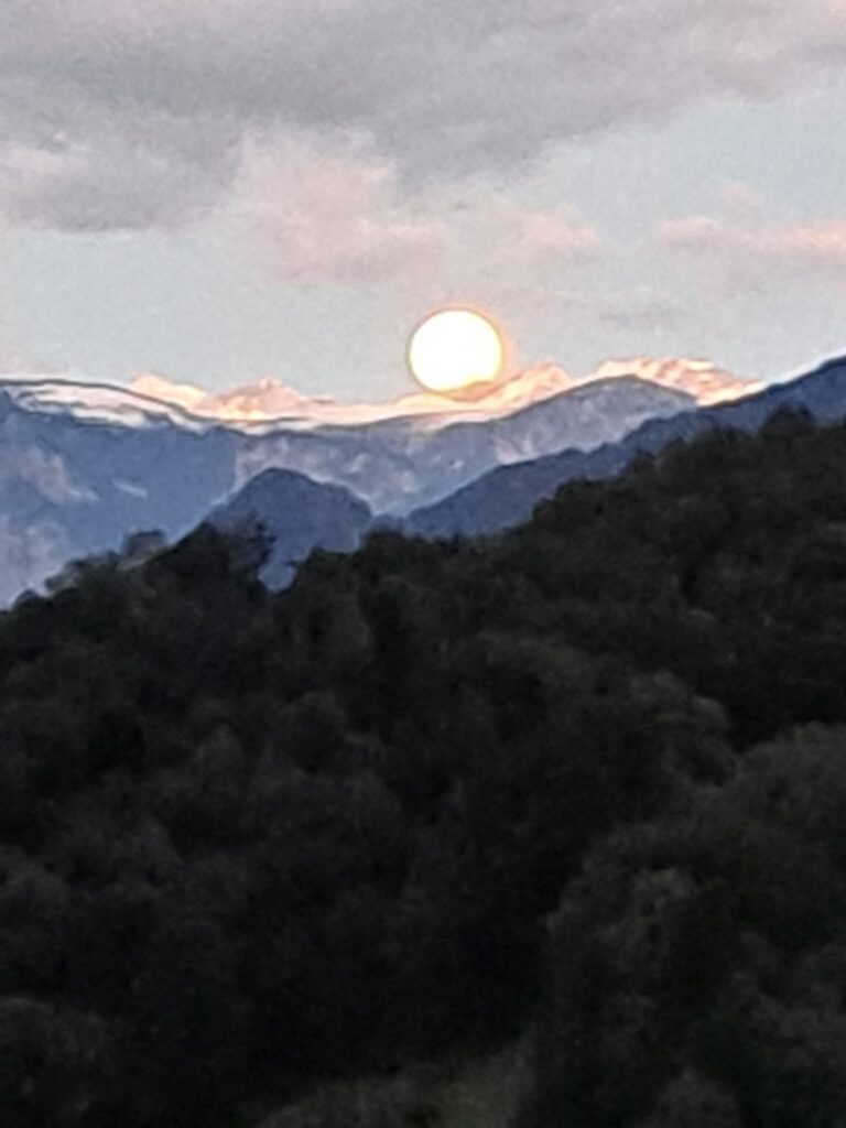 Beim Abendessen setzte sich dann der Vollmond in Szene: Plötzlich sah man über dem Bergkamm ein helles Licht erstrahlen, und in Windeseile stieg dieser helle und riesige Super-Vollmond in den Himmel. Welch ein Spektakel!