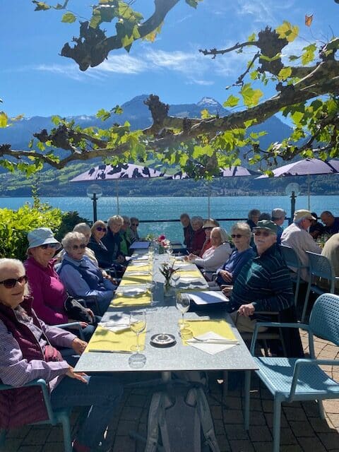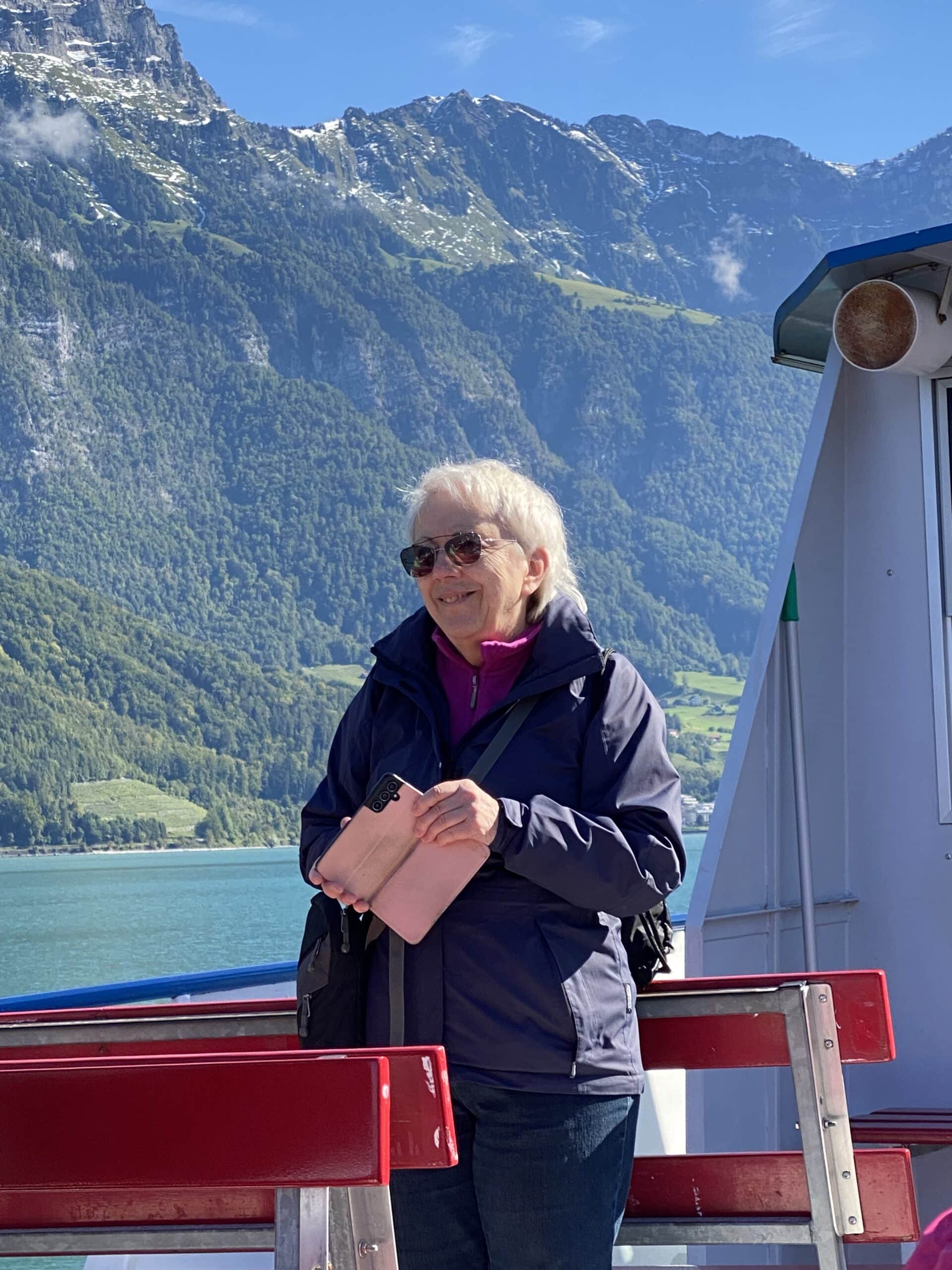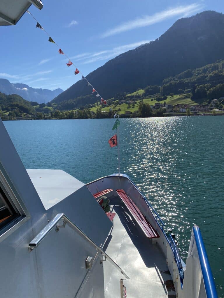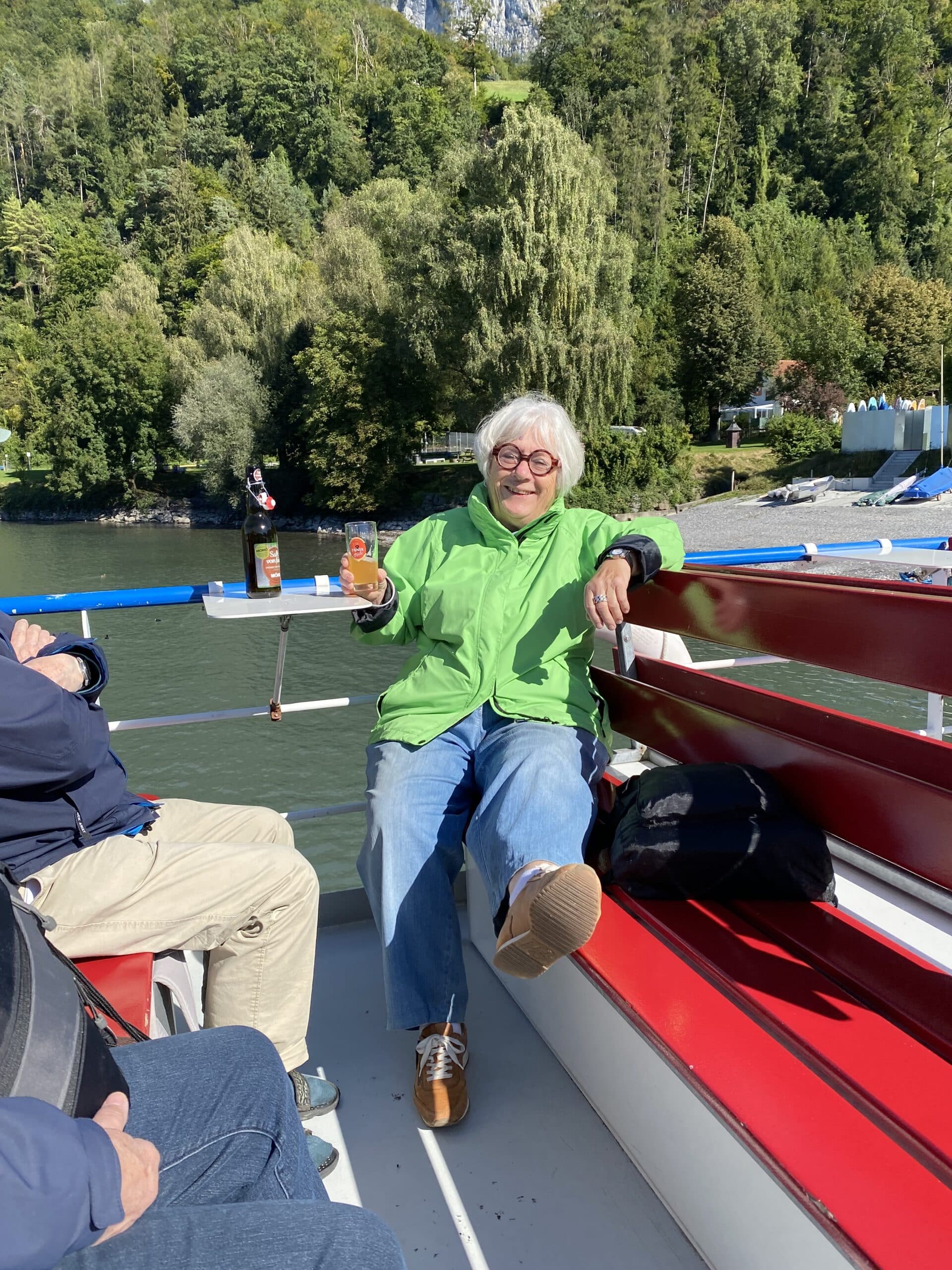 Mittwoch – und strahlendes Wetter! Poschi und Bahn brachten uns zum Schiff in Unterterzen. Die Sonne strahlte, der See blinzelte in allen Blau- und Grüntönen und die Sicht auf die Berge rundherum – einfach grossartig! In Au verliessen die Wanderer das Schiff und begaben sich zu Fuss nach Quinten. Über einen romantisch-verwachsenen Waldpfad verlief die kleine Wanderung, immer mit Blick auf den See und kleine Badebuchten, bis direkt ins Restaurant Seehus. Als kleine sportliche Einlage kam hinzu, dass ein ausgewachsener Baum sich über den Weg gelegt hatte und die Panther, je nach Grösse, über oder unter dem Baum durchkriechen mussten – was selbstverständlich zu viel Gelächter führte. Im Restaurant Seehus war für uns ein Tisch auf der Terrasse reserviert. Wir wurden mit gutem Essen und einem ausgezeichneten Service verwöhnt. Mit Schiff und Postauto ging es dann wieder in die Höhe – und zum Boulespiel. Karin Brönnimann hatte eine Bocciabahn vor dem Hotel entdeckt und sofort Kugeln und Spieler organisiert.