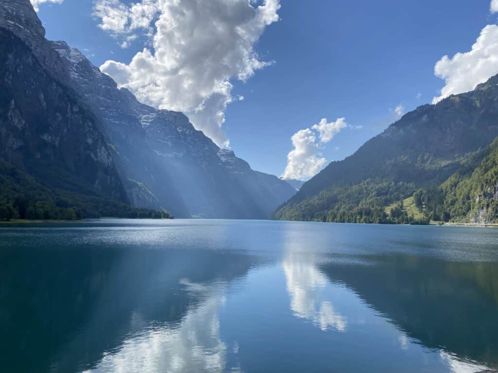 Via Glarus ging es am folgenden Tag an den dritten Glarner See, nach Rodannenberg am Klöntalersee. Das Wetter war wieder strahlend und die Farben dieses Sees absolut umwerfend. Die Wanderer gingen dem rechten Ufer entlang zum Camping und darüber hinaus. Wieder einer dieser hinreissend romantisch-wilden Waldwege durch Buchenhaine und Blick auf den See, schmale Wegstellen und knorrige Wurzeln. Irgendwann musste die wanderfreudige Pantherschar dann leider umkehren, da das Mittagessen im Camping rief und der Bus mit Abfahrt drohte.
