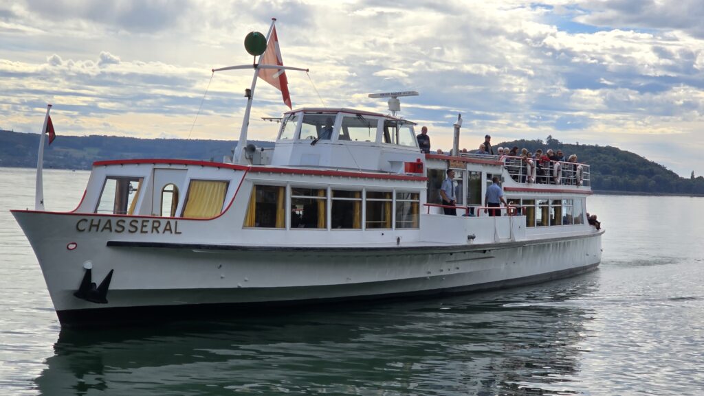 Nach dem Entrichten des Wegzolls von zwei Franken für den Unterhalt des Gemeindeweges, gelangen wir über Treppen und Gässchen hinunter an den See zur Schifflände. Chasseral, das Kursschiff, bringt uns zurück nach Biel.