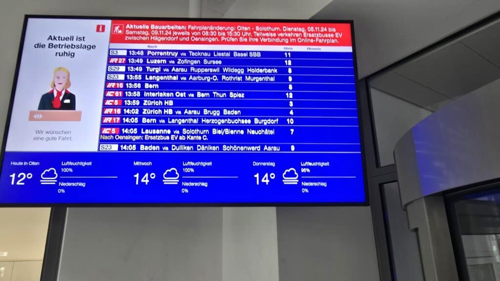 Nach dem Empfang durch ein zweiköpfiges Team wurden uns in einem Film die Aufgaben und das Funktionieren einer Betriebszentrale vorgestellt. Wie erfuhren, dass es für das Schienennetz der SBB vier solche Zentralen gibt. In Olten arbeiten nicht nur Zugverkehrsleiter und Disponenten, sondern auch Mitarbeitende, welche die Kundeninformation an den Bahnhöfen steuern.