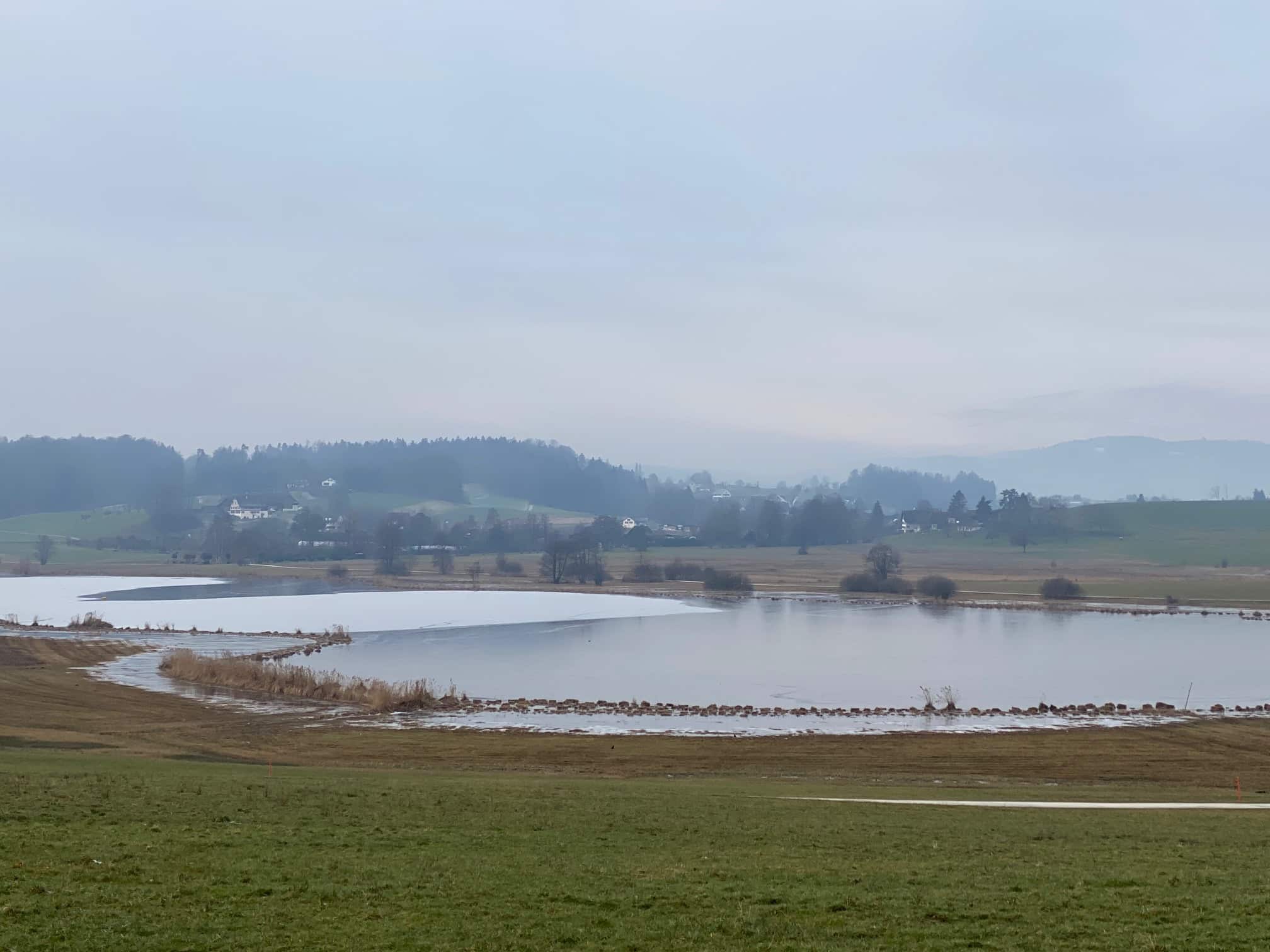 So kommen wir zur Moor- und Seelandschaft am Lützelsee. Ruedi wollte uns seine Lieblingsgegend aus Jugendjahren zeigen, muss aber seinen verletzten Fuss noch wochenlang pflegen und Arnold ist als Wanderbegleiter eingesprungen.