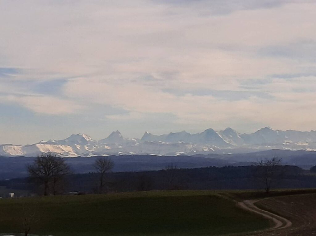 Nach dem Mittagessen hatte der Wettergott ein Einsehen: Der Nebel lichtete sich und die Sonne kam durch. Plötzlich bot sich uns ein atemberaubender Blick auf die Berner Alpenkette, die sich in ihrer ganzen Pracht zeigte. Bei strahlendem Sonnenschein und herrlicher Aussicht ging es dann durch den Schnee hinunter zur Mittelstation Nesselboden. Die Abfahrt war ein Genuss – die Winterlandschaft glitzerte in der Sonne und die Gruppe genoss jede Minute.