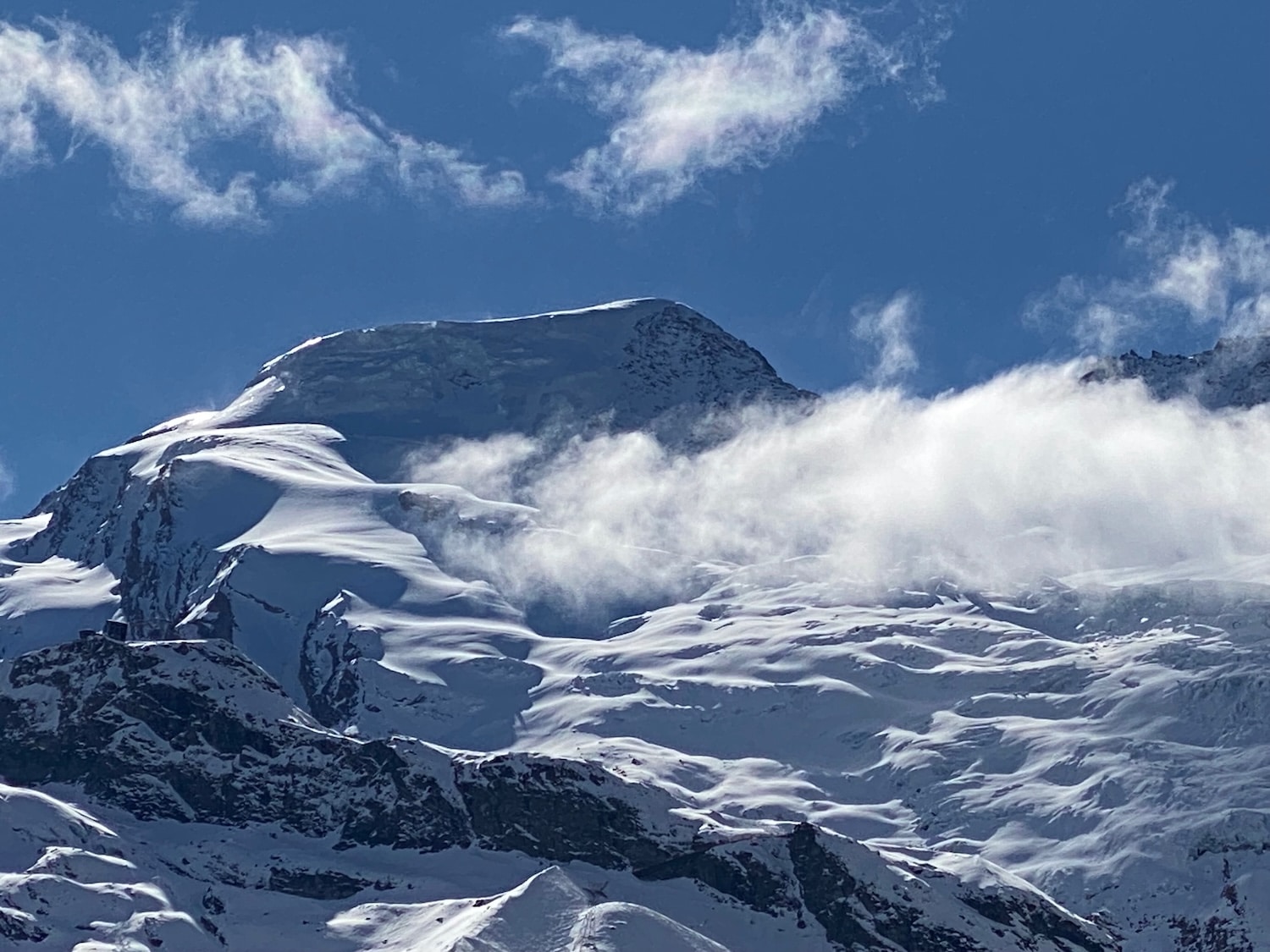 Am Mittwoch folgen die 2-Wanderer in Saas Fee den Spuren des während der Nazizeit in die Schweiz emigrierten deutschen Dichters Carl Zuckmayer. «Dann biegt man, schon auf der Höhe der Ortschaft, um eine Felsenecke und steht plötzlich vor einem Anblick, wie er mir nie und nirgends begegnet ist. Man steht am Ende der Welt und zugleich an ihrem Ursprung, an ihrem Anbeginn und in ihrer Mitte.» – Mit diesen Worten beschrieb Zuckmayer einst die majestätische Mischabelgruppe mit ihren Viertausendern. Heute ist von der ganzen Pracht allerdings nicht viel zu sehen. Mit viel Fantasie können wir die Umrisse von Täschhorn und Dom im Nebel erkennen. Der «Zuckmayerweg» ist aber attraktiv, und der Aufenthalt im Restaurant «Alpenblick» mit seinen feinen Backwaren und der liebevoll eingerichteten Gaststube ist ein Genuss. Die 1*-Wanderer wandern in der Zwischenzeit von Saas Balen nach Saas Grund. Die Spezialitäten vom Vortag des lokalen Bäckerei-Cafés schmecken indes nicht jedem Gaumen.