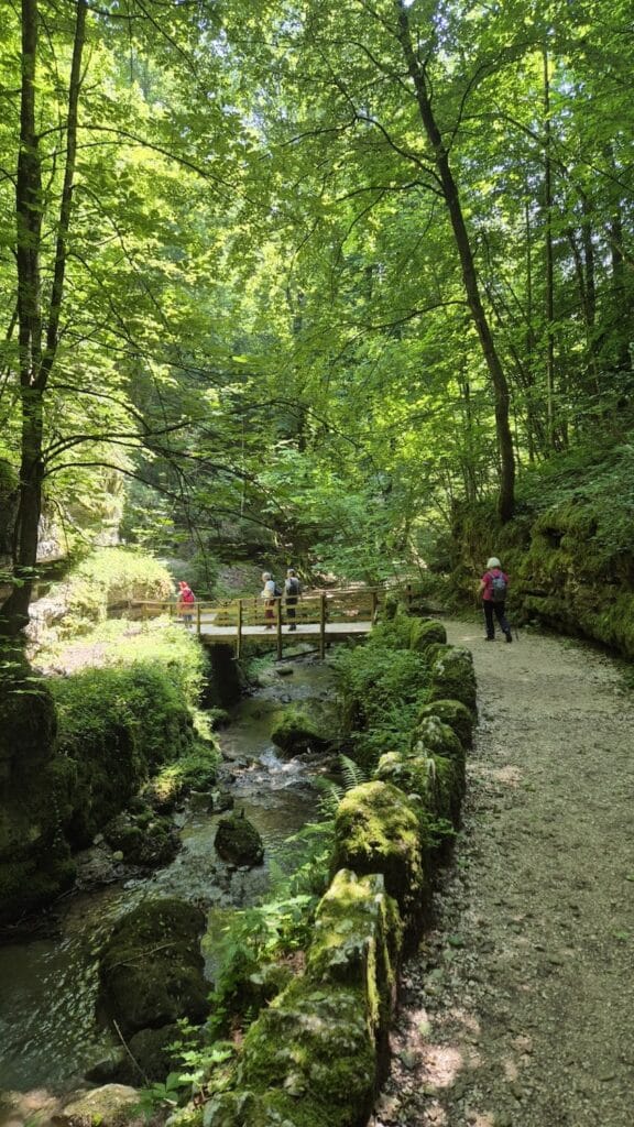 In der Verenakapelle erzählte uns Ursula – begleitet von Glockengeläut – die Legende der heilgen Verena, die – so will es die Überlieferung – auf einem Mühlestein die Aare hinabgefahren sein soll. Wahrlich ein Wunder! Wir alle staunten und lauschten andächtig. Der anschliessende Bummel durch die kühle, moosbewachsene Schlucht schien allzu schnell vorbei.