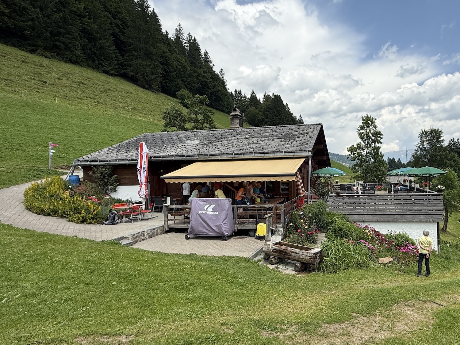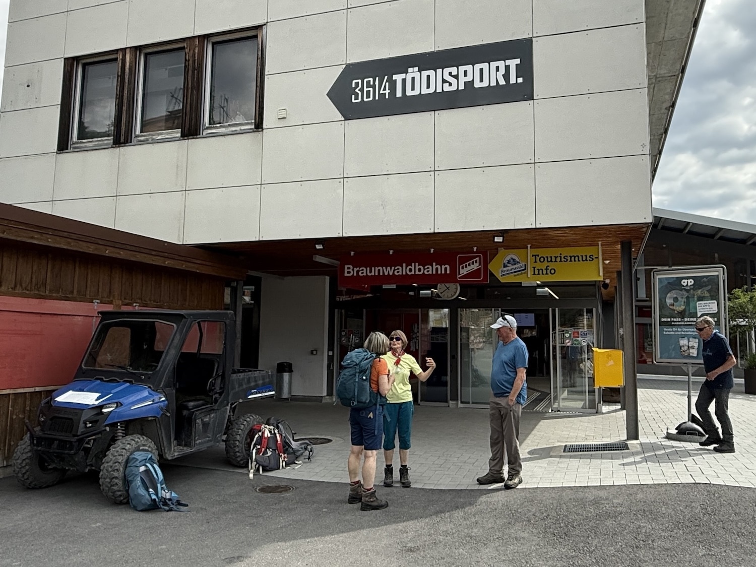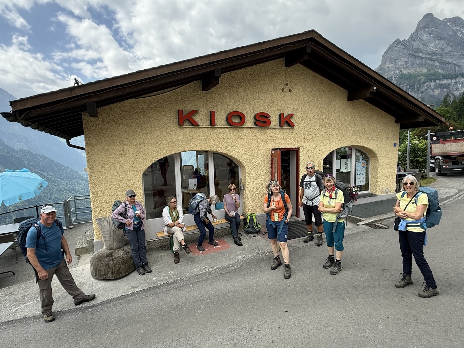 Start der ersten Tageswanderung war Braunwald, welches wir mit der Standseilbahn erreichten. Auf der gemütlichen Terrasse des Bergrestaurant Nussbühl trotzten wir der Hitze mit z. B. einem «kühlen, trüben» Apfelmost und stärkten uns mit einem kleinen Mittagessen für den Nachmittag.