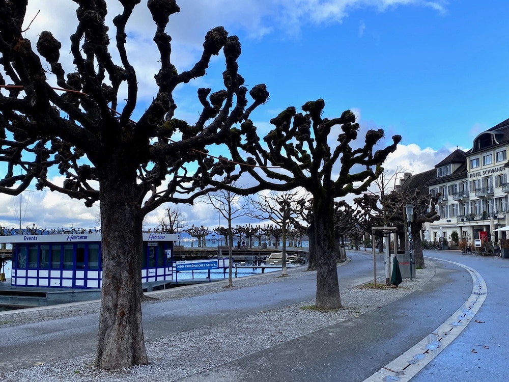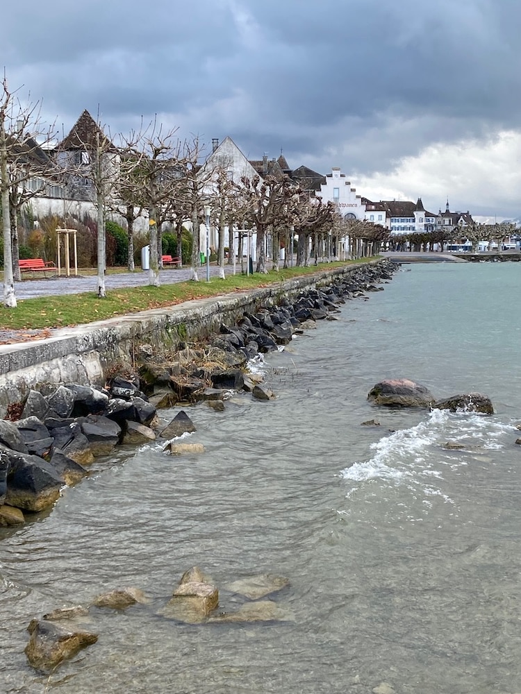 Auf der zügigen Seepromenade erzählt Ruedi Hösli lebendig und prägnant vom Zusammenschluss von Rapperswil und Jona, von Rappi als bedeutendem Eisenbahnknotenpunkt mit den unterschiedlichsten Arbeitsplätzen, und weshalb für Kinder das Beladen von Tieren, Zelt und Wohnwagen des Zirkus Knie in zwei Güterzüge jeweils als besonderes Ereignis galt. Mit Erstaunen vernehmen wir, wie Herr Gebert – ein Schreiner in der Altstadt- den ersten WC-Spülautomaten erfand, heute patentiert unter dem Namen Geberit.