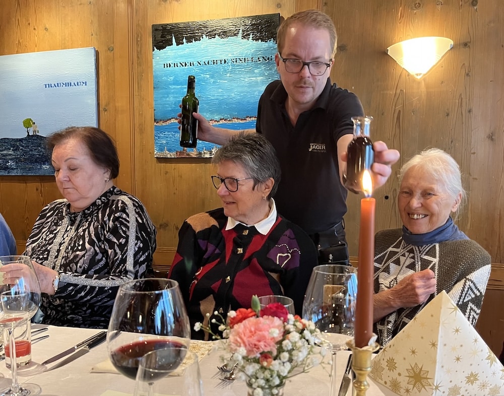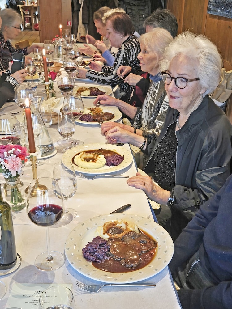 Es war, wie üblich, ein fröhliches, gemütliches Zusammensein, «dr Mocke» war zart und schmeckte gut, ebenso wie der Salat und das Dessert. Herzlichen Dank dem Restaurant!