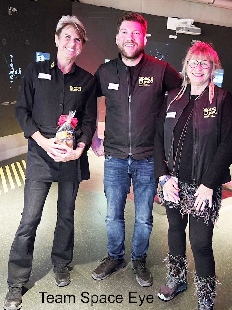 Menschlich-irdische Bedürfnisse nach handfesten und verständlichen Erklärungen bedienendie kompetenten und freundlichen Mitglieder der Crew, die unsere Gruppe von rund 30 Personen betreuen. «Sternstaubsuppen» (in den Varianten Ingwer-Karotten und Randen-Kokos) runden den gelungenen Anlass ab. Der Abend im Observatorium hatte aber schon mit einem kulinarischen Höhepunkt begonnen: Wir wurden begrüsst mit regionalen Köstlichkeiten – die Tochter der Cateringverantwortlichen bäckt jeweils verschiedene Brote – und vorzüglichen Schweizer Weinen. Ein riesiges «Dankeschön» gebührt Beat Jaggi, der diesen Apéro offeriert hat.