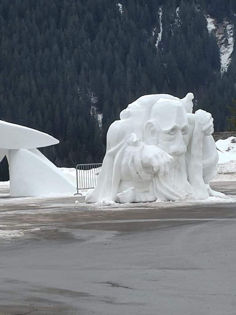 In Grindelwald schauten wir uns die schmelzenden Reste der Eisfiguren vom World Snow Festival an und stiegen dann müde und glücklich in den Zug nach Hause.