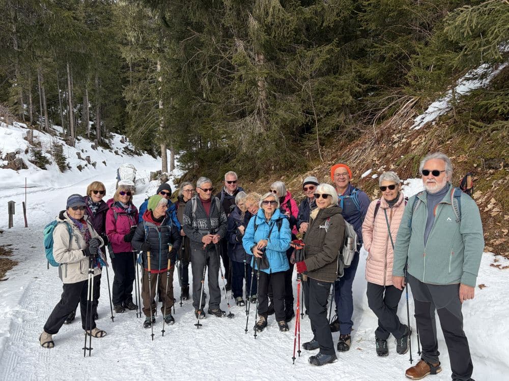 Und dann durften wir doch noch wandern, rauf und runter, im Schnee und auf Eis, mit Stöcken und Iiseli, bei prächtigem Wetter und wunderbarer Aussicht.