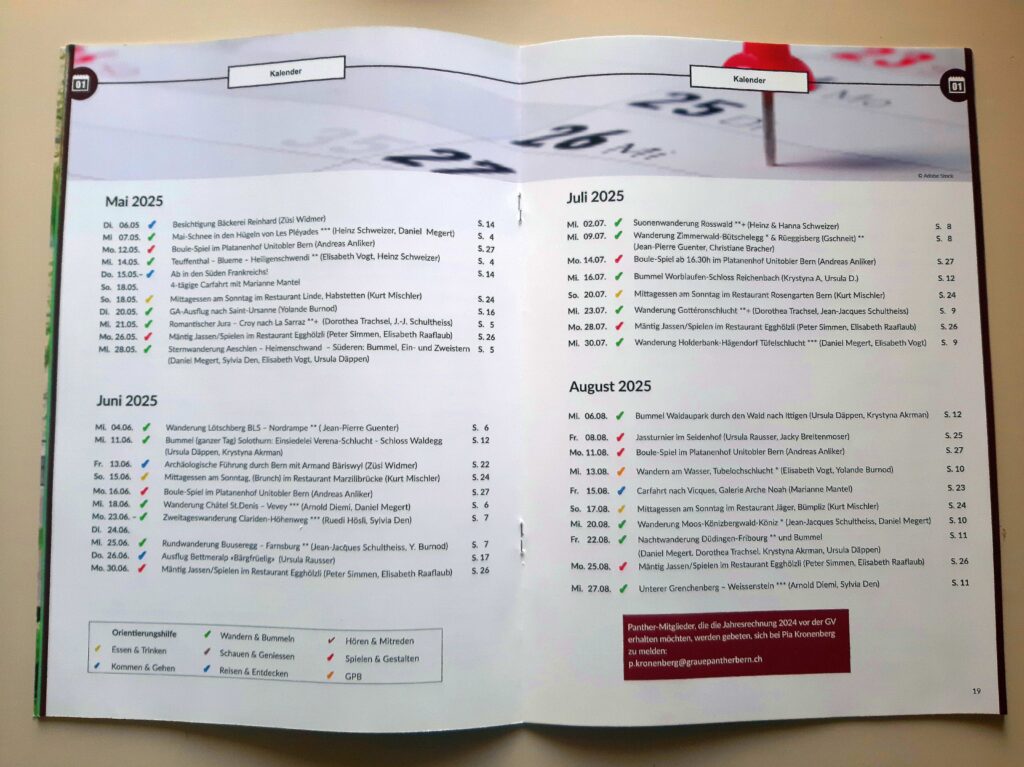 Er enthält wie bisher die Ausschreibungen aller zukünftigen Anlässe der kommenden vier Monate.